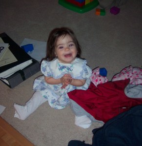 But in between, long months go by in which I am waiting for the next milestone… and she stays basically the same. It’s easy to take a snapshot and say that my 13-month-old is functioning at about an 8-month level. It’s much harder to communicate the experience of what those 13 months were like. At some point, my expectations shut down. Not entirely, of course. Gerti, our PT, tells me that I still have high expectations for Julianna—but to me, my expectations are so miniscule as to be not worth mentioning. They involve such basic things. Like being able to crawl, feed herself, and walk, so that we can try to have another baby.