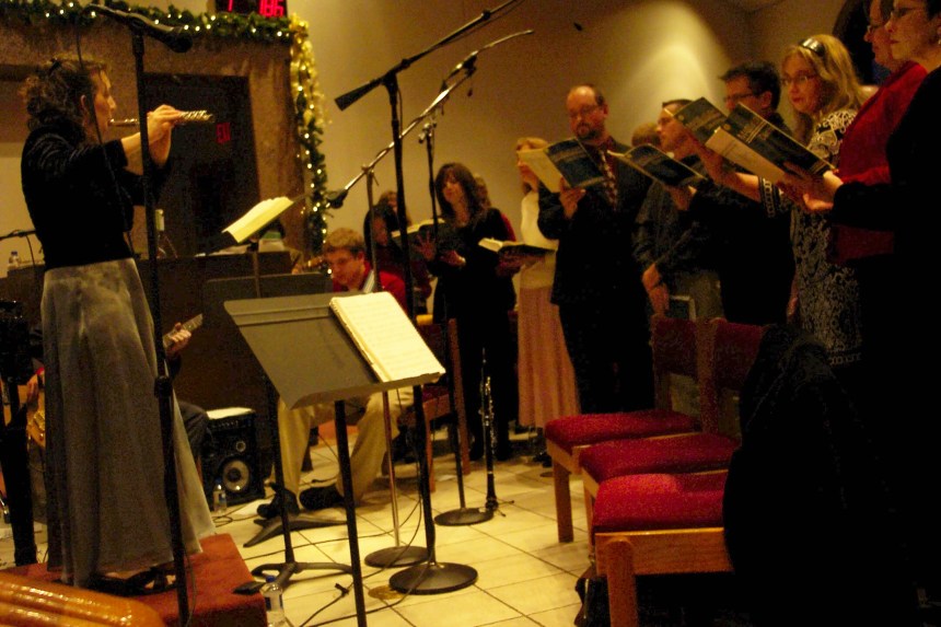 …I had to laugh. And by the time we had raised the roof with “Angels We Have Heard on High” and “O Come All Ye Faithful” (piano, drums, two guitars, bass, trumpet, trombone and thirty singers), the magic had happened. My heart was full–open–overflowing.