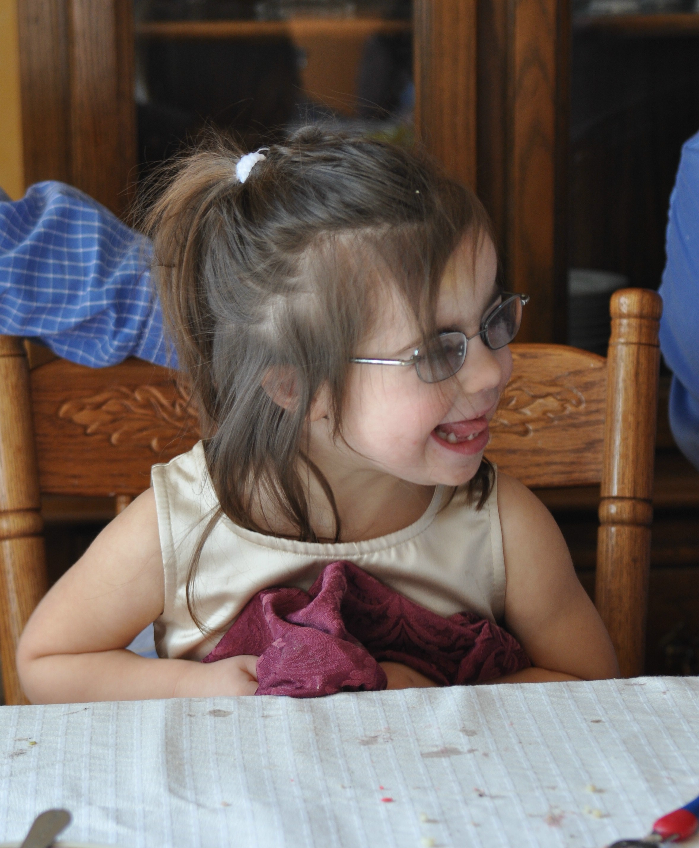 Being Julianna’s mother means that I have to think through the day differently, and figure out ways to teach my three-year-old such basic concepts as off, on, out, in. It means that I spend three hours in a pulomonologist’s office, only to be referred to an ENT to do it all again. It means that I have to grit my teeth and space jump out of my comfort zone to call legislators, despite hating the political process top to bottom.