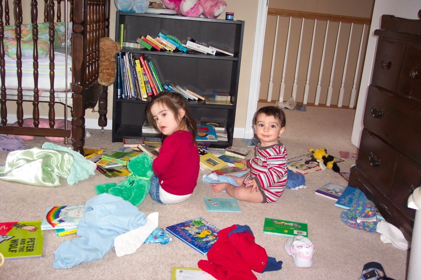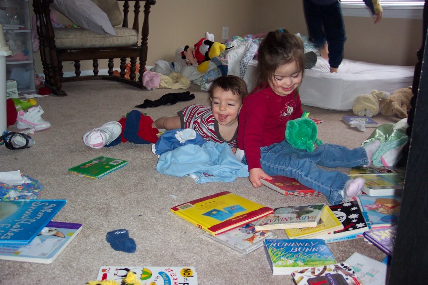 And I, as Mommy, stand off to the side and marvel. Because you see, as Nicholas catches up to Julianna developmentally, I get to watch two of my children make the same milestones at the same time. Right now, they are both high-jumping into a new plane of language comprehension. Julianna is learning to respond to instructions: put this in the trash, please, and carry your plate to the table. Nicholas isn’t at that level, but he, too, abruptly began showing his ability to process and respond to commands. As in, Nicholas, no touch!