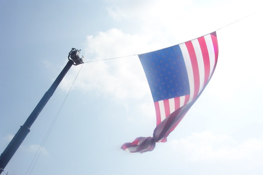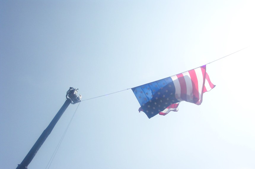 But this is what I spent the parade staring up at. With or without the aircraft buzzing by, I couldn’t stop watching the lazy dance of this flag stretching and rolling on the breeze.
