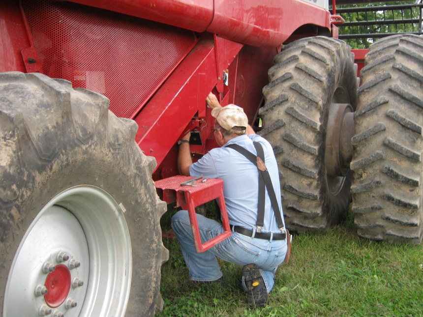 It’s the comfort of knowing, in a world constantly shifting, that some things never change: the same hulking behemoth in red, visible from half a mile away, needing work, as always. Being coaxed back to life, as always, by a man wearing the same blue snap shirts, the same jeans and the same suspenders as always.