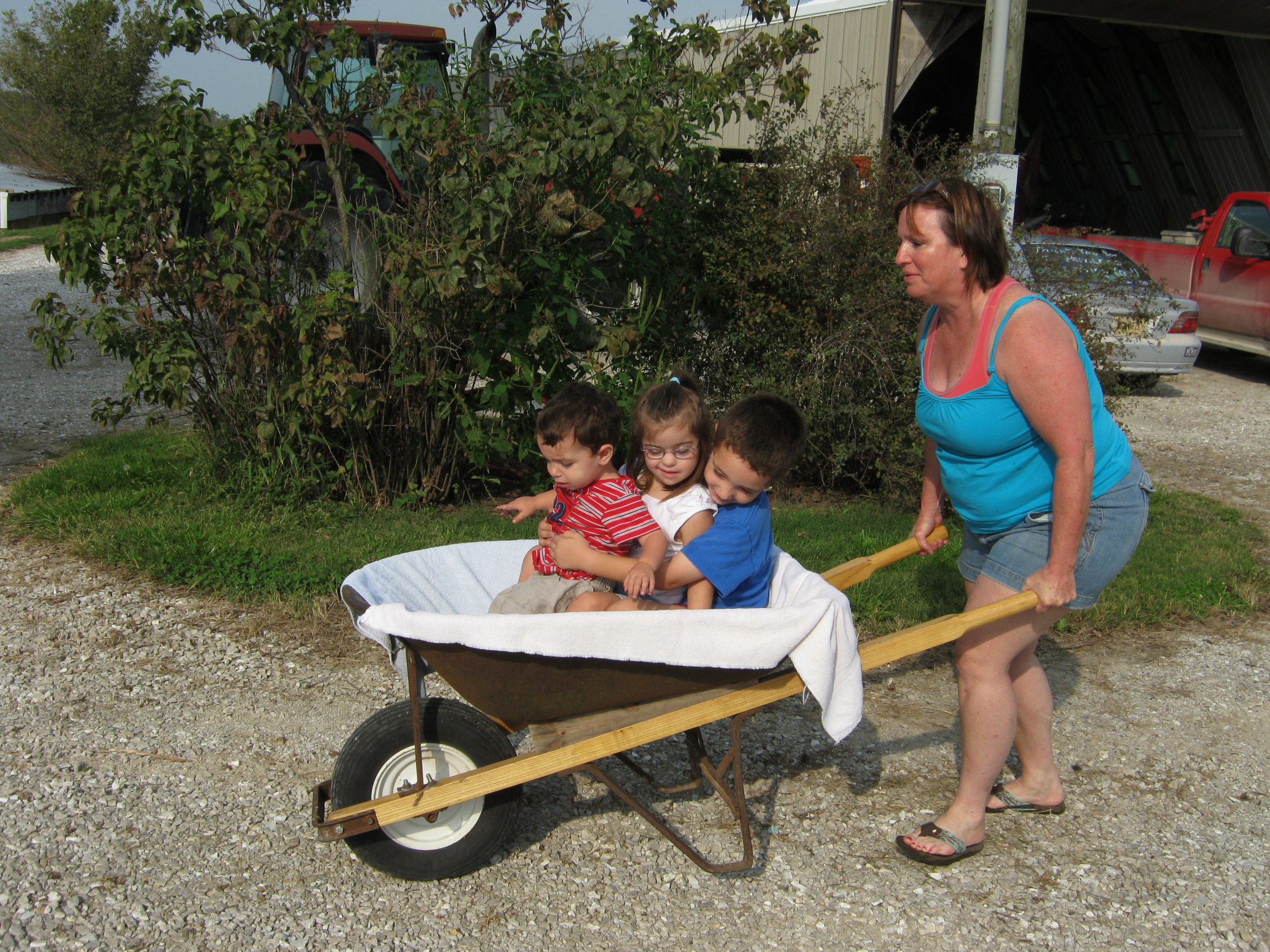 It’s visits with distant aunts (mine) who give wheelbarrow rides.