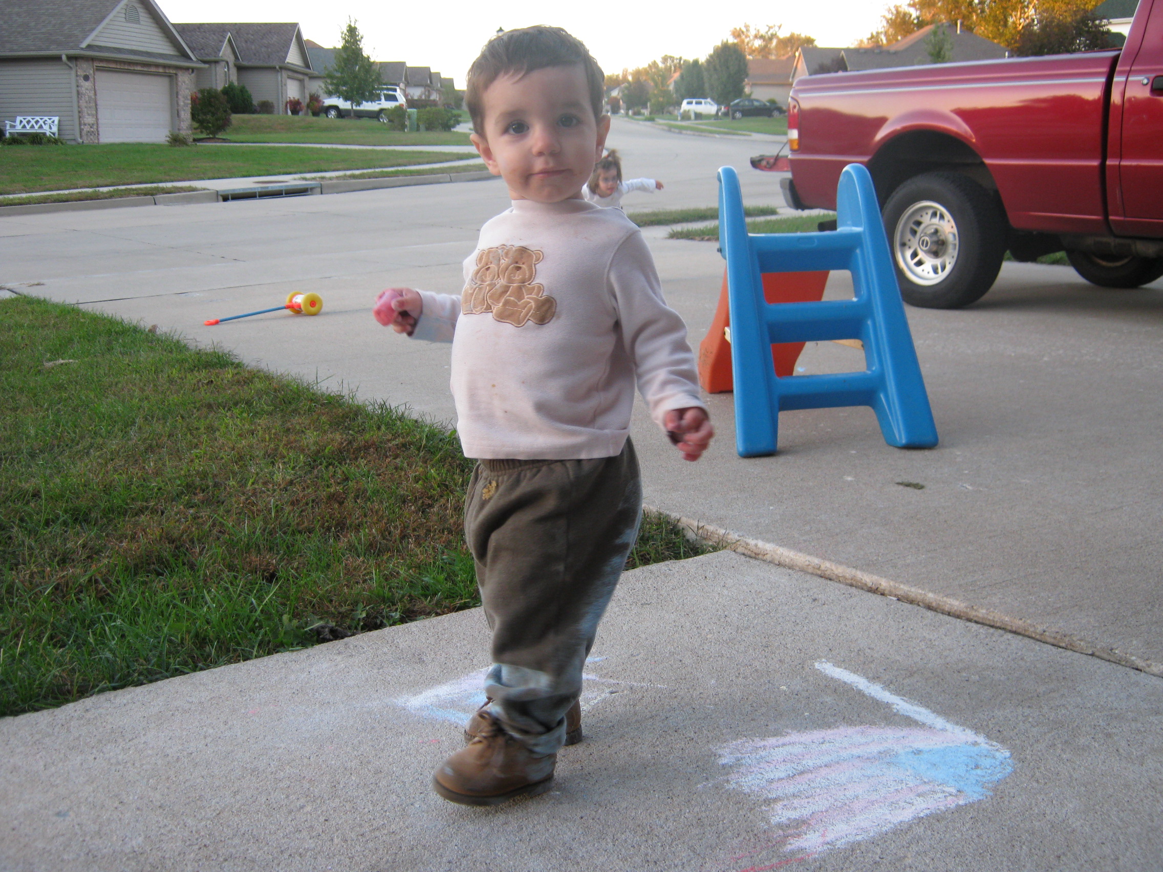Sidewalk chalk! Yay! A canvas that doesn’t move!