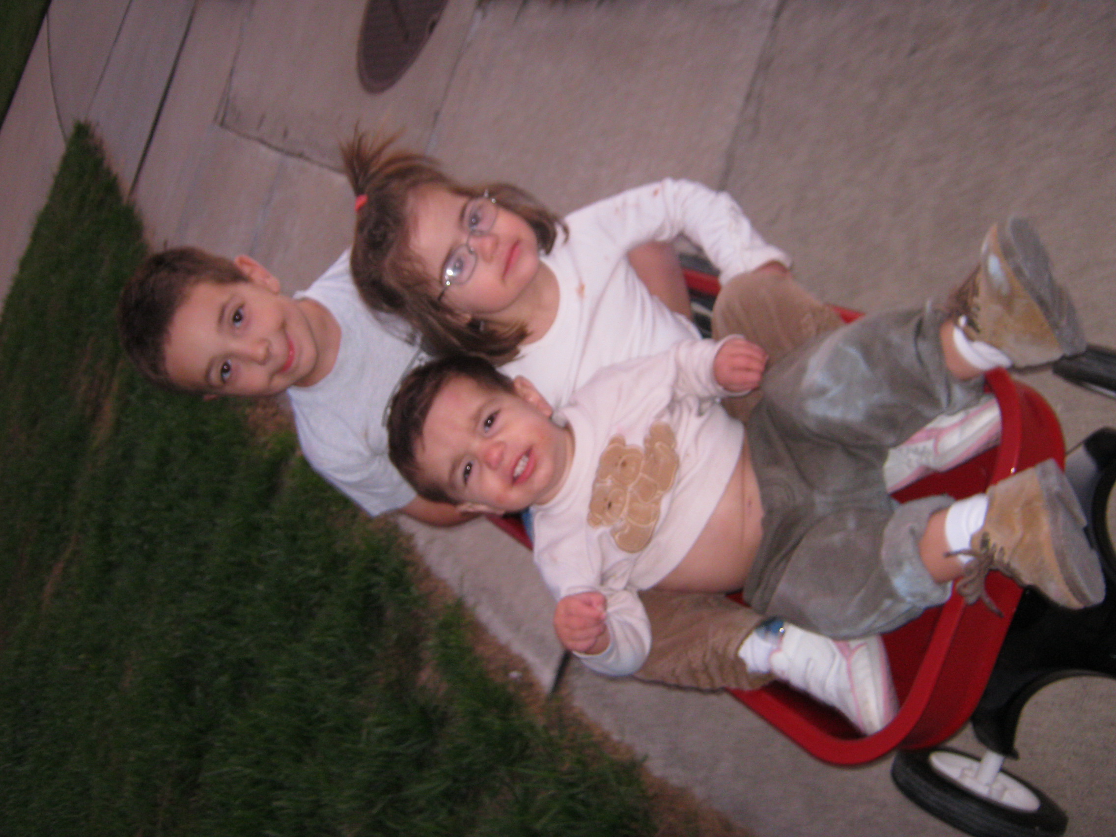 Sidewalk: check. Truck bed: check. What’s next? Oh, I know. Let’s take a wagon ride!