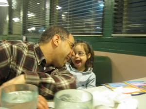 Here’s one of those things that a mother “treasures in her heart.” A few days ago, I went out to get Julianna off the bus, and the bus driver–incidentally a woman who loves her job so much that she wears T shirts that are all about being a bus driver, and (even cooler) a bus driver for special kids–shook her head and said to me, “You know your little girl just charms everyone she meets?” Sniff, sniff!