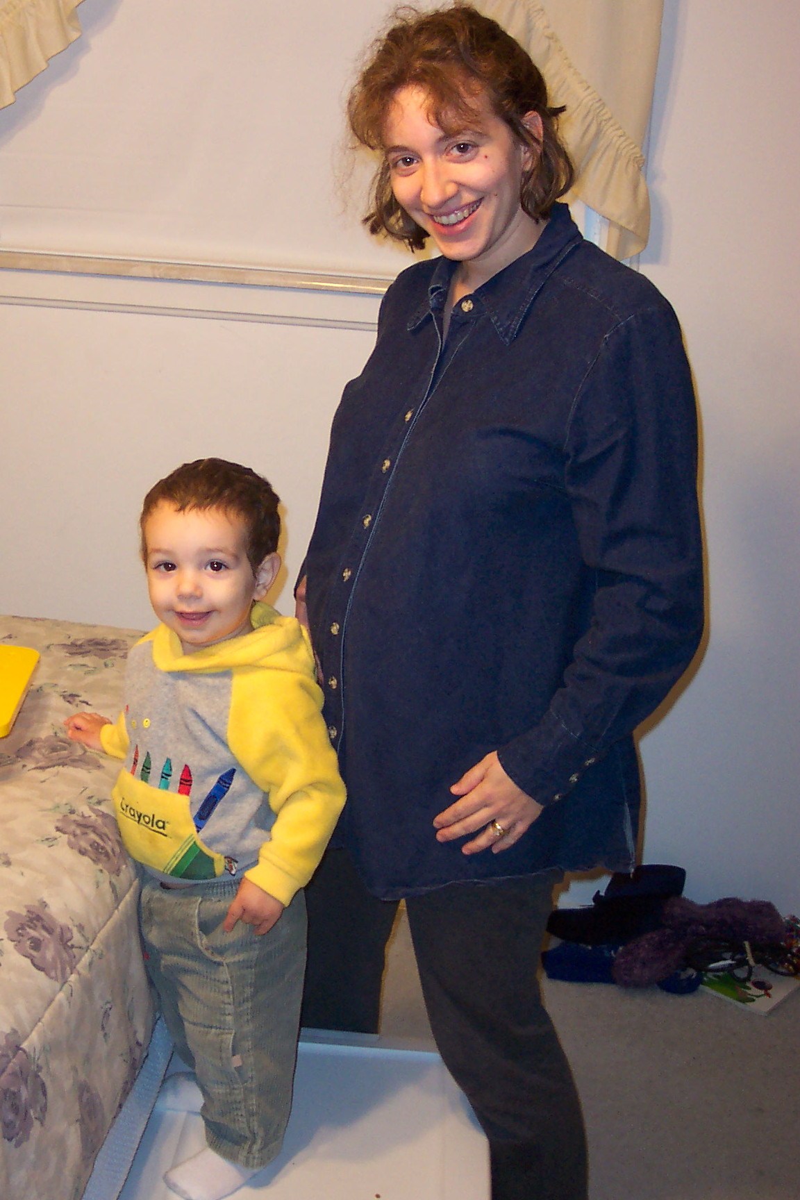 Every night for some time now, he’s wanted to say good night to the baby. He comes over, gives me a hug and a kiss, and then hunches over to press his lips against my belly. A few months ago he whispered. Now, thanks to the great WWW, he knows the baby can probably hear him, so he just baby-talks to it, incorporating all the lessons he’s learned along this journey. “Good night, baby! Now you go to sleep and wake up in the morning. Remember what I told you! It’s time to start acting like a human now, because you are one!”