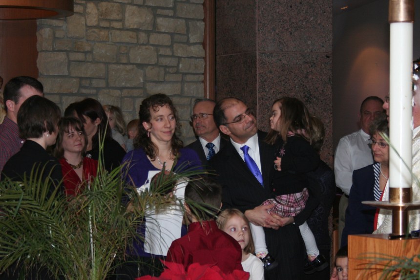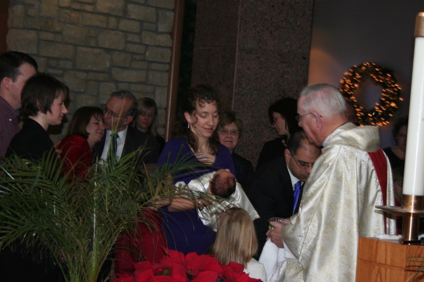 Last night I set out to cull the photos of Michael’s baptism. At first blush, I thought it would be easy: there were eight to ten pictures of every part of the ritual, and a couple dozen of our family. But as my finger paused above the “delete” key, my breath caught. Not at the foreground. At what was happening in the background.