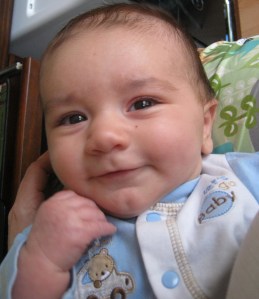 As long as I’m asking for advice, I have a sleep question. Michael is now four months old, and he’s having a lot of trouble sleeping during the day. He’s actually slept through the night a few times (gasp! I didn’t know babies did that!) but it’s kind of frustrating during the day. I nurse him to sleep, put him down, he wakes up. Rinse & repeat. Very tiresome, frankly. With the other kids, schedules and nice long naps seemed connected to the “learn to put yourself to sleep” stage–i.e., the let them cry stage. But I’ve never done that until they were at least nine months old–into the object permanence stage. I’m really hesitant to do that with Michael so early. But he’s got to sleep longer than five minutes in a shot!