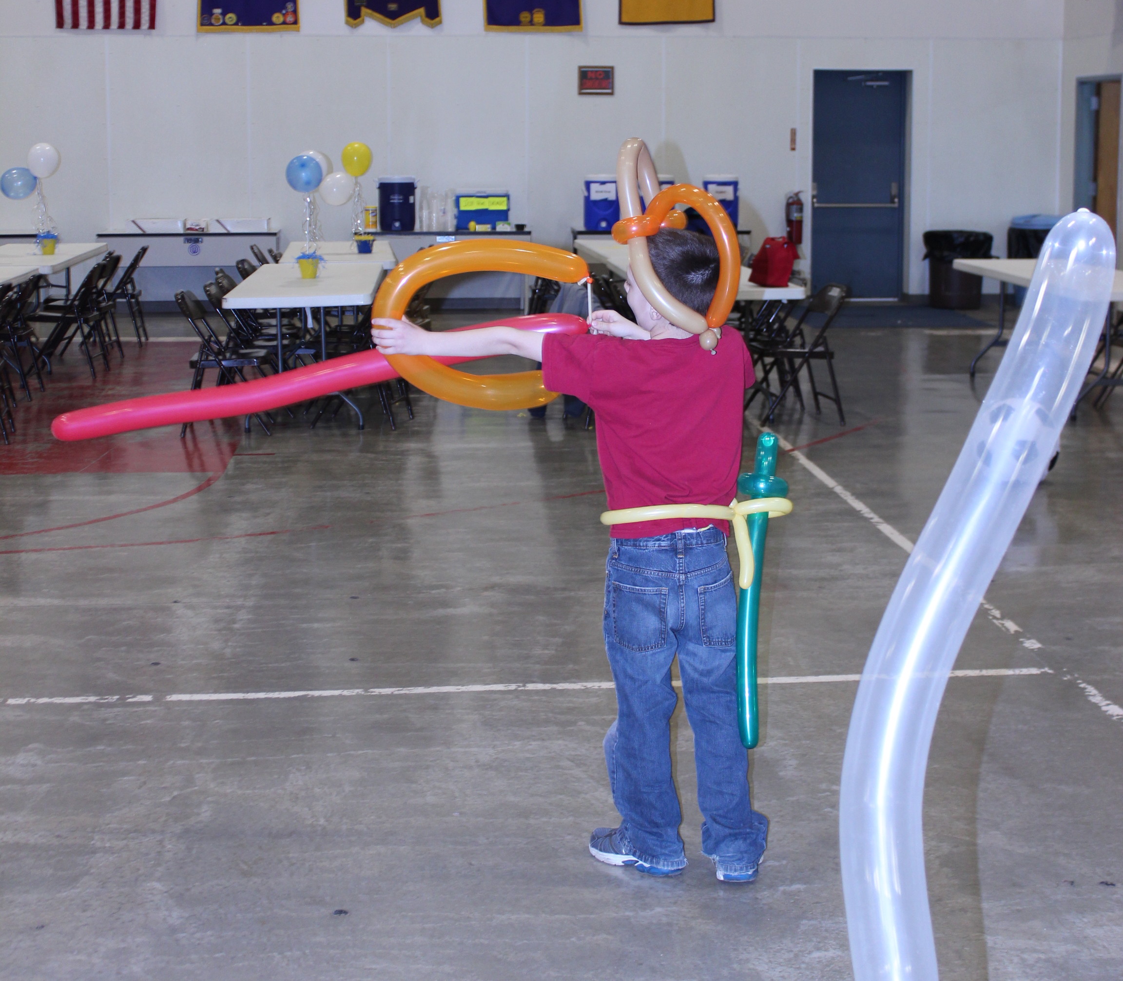 Meanwhile, the boys were having swords, bucklers, crowns and bow & arrows made for them in great quantity by the balloon man: