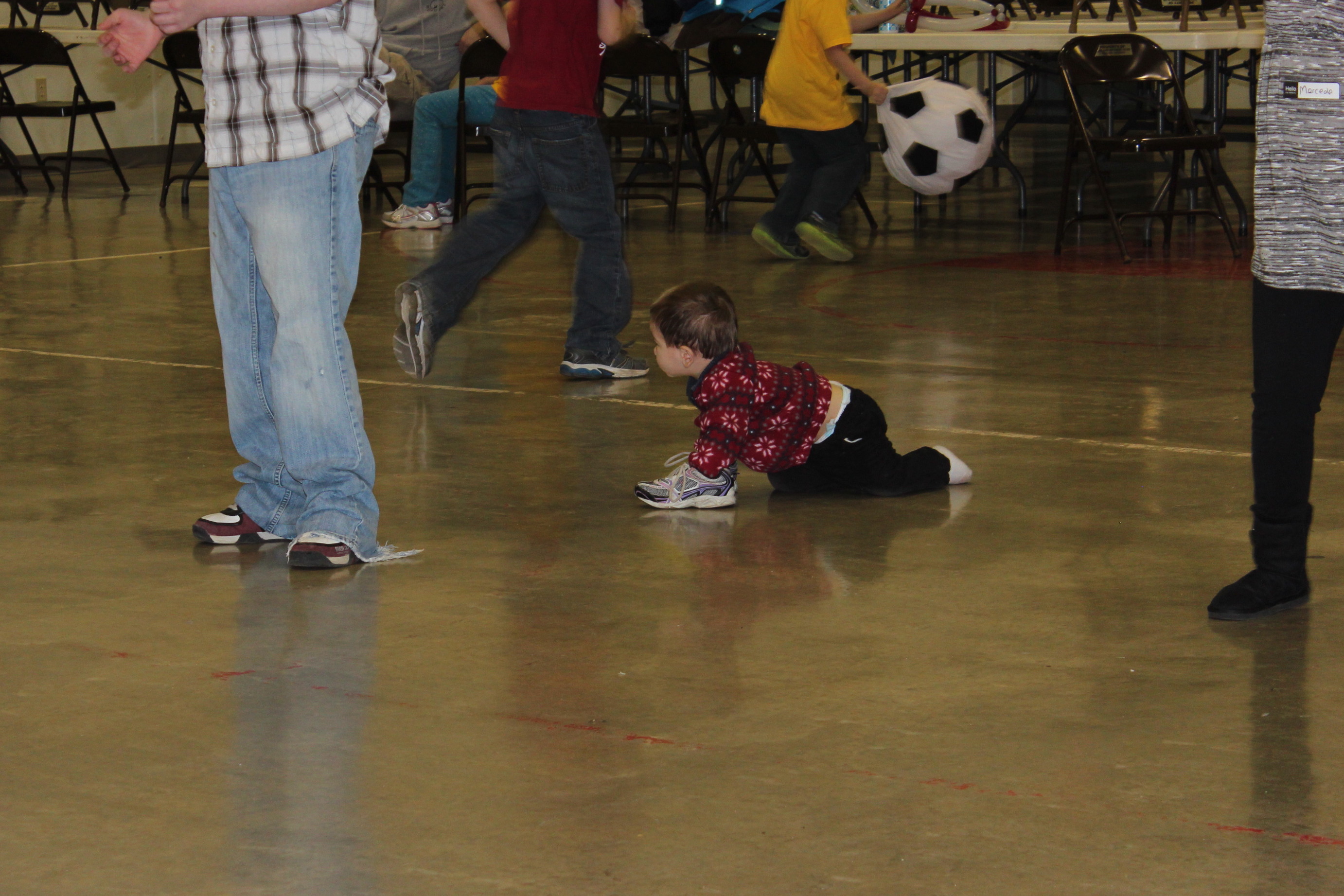 Later there was dancing, which was super cute, but again–too many other kids involved for me to share pictures. During the dancing, Michael did what Michael does. Lately, that means steal shoes and walk with them on his hands: