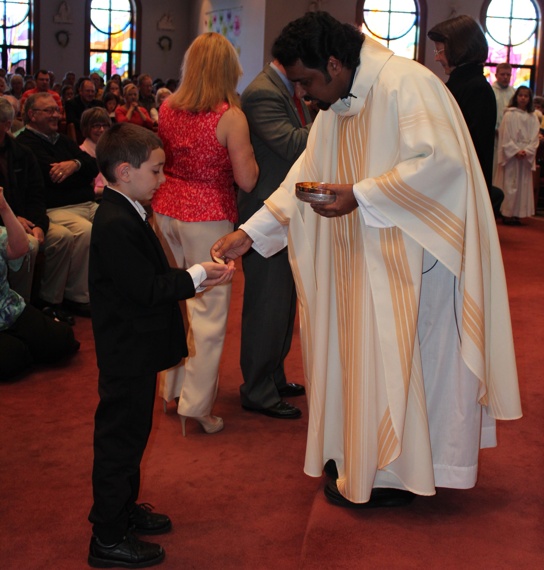 (Please withhold comments about how the Real Presence is present under one species. I’m a liturgist. I know this. It’s still his First Communion.)