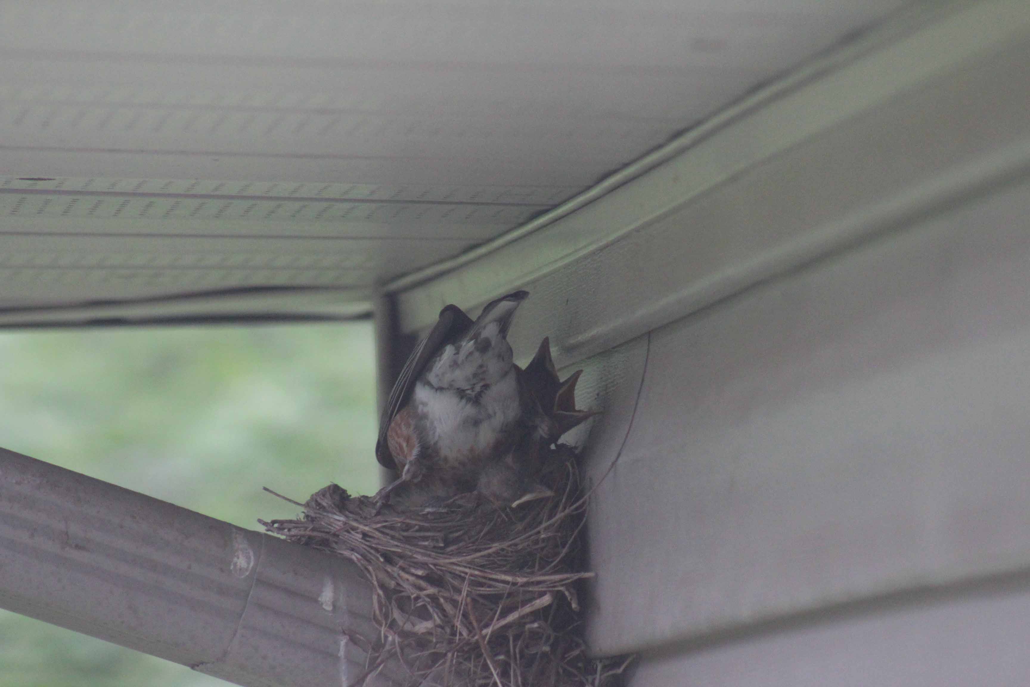I’m having another Wildlife Mama and Baby Moment this week. Early this spring, Christian discovered a birds’ nest in the gutter outside our bathroom window. This week we have had a new obsession: watching baby birds. I’ve never managed to get a picture of Mama Bird actually putting the food in the babies’ mouths, but it is fascinating. I don’t hear any squalling, but they look like they’re squalling! I’ve blown over a hundred pictures this week. Mostly I’ve gotten lots of picture’s of a bird’s butt:
