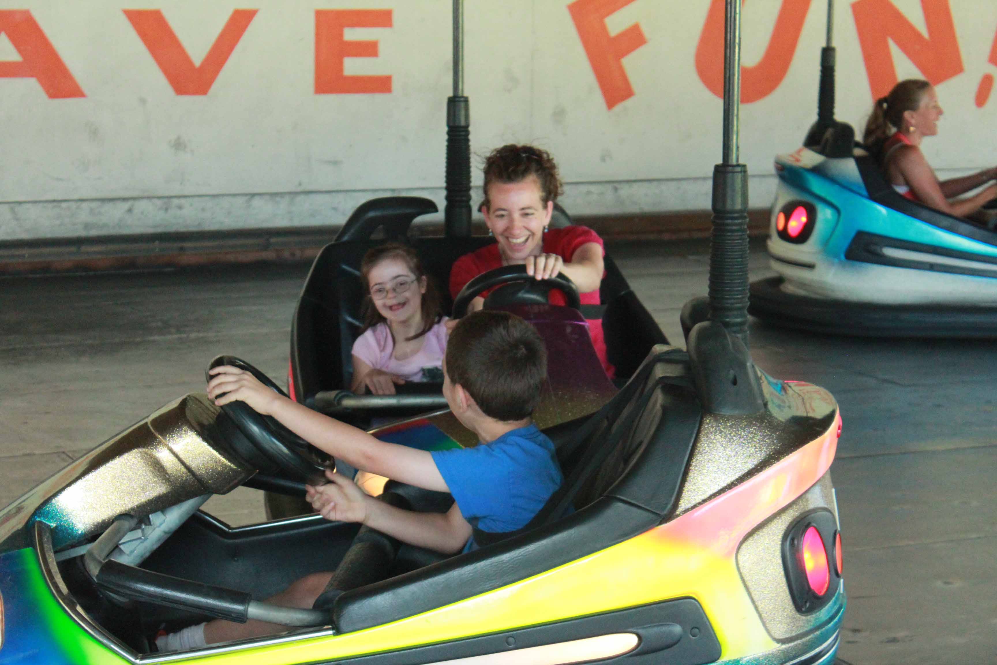 I’ve reached the point in a vacation when I’ve lost the date. I only know the day of the week, and that with effort. We spend the late morning at Fun City, going down crazy slides and doing bumper…uh, everything. Julianna insists she wants to do bumper boats, but spends the entire ride shrieking because she’s getting wet.