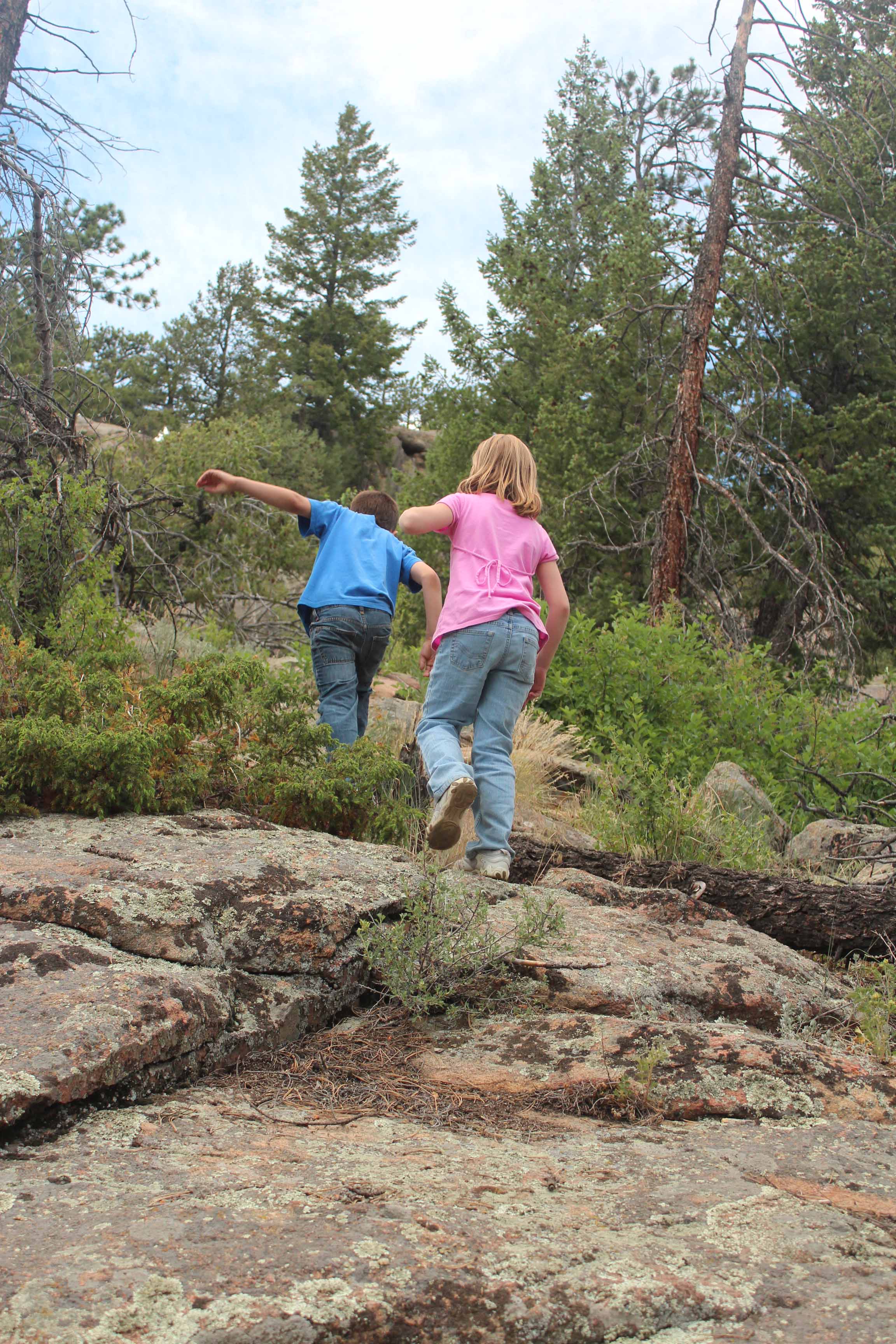 In the afternoon I take Alex and his cousin on a real hike up the mountain behind the ranch. We cross a fallen barbed wire fence which is the border of the national park, and we climb the enormous boulders as far as we can. I’m so, so careful with them, knowing I’m in charge of more than my own child. We make it up and down without mishap…until my niece trips over the barbed wire fence fifty yards from the lodge, and slices her knee on a barb. I spend an hour in a panic I’m trying not to show to her, because she’s already being dramatic enough about it. I’m so freaked, I look up the DTaP schedule to set my mind at ease that she’s surely up to date on her tetanus shots. Meanwhile my cousins laugh and joke about how her mother did the same thing on a rusty auger when she was a teenager.