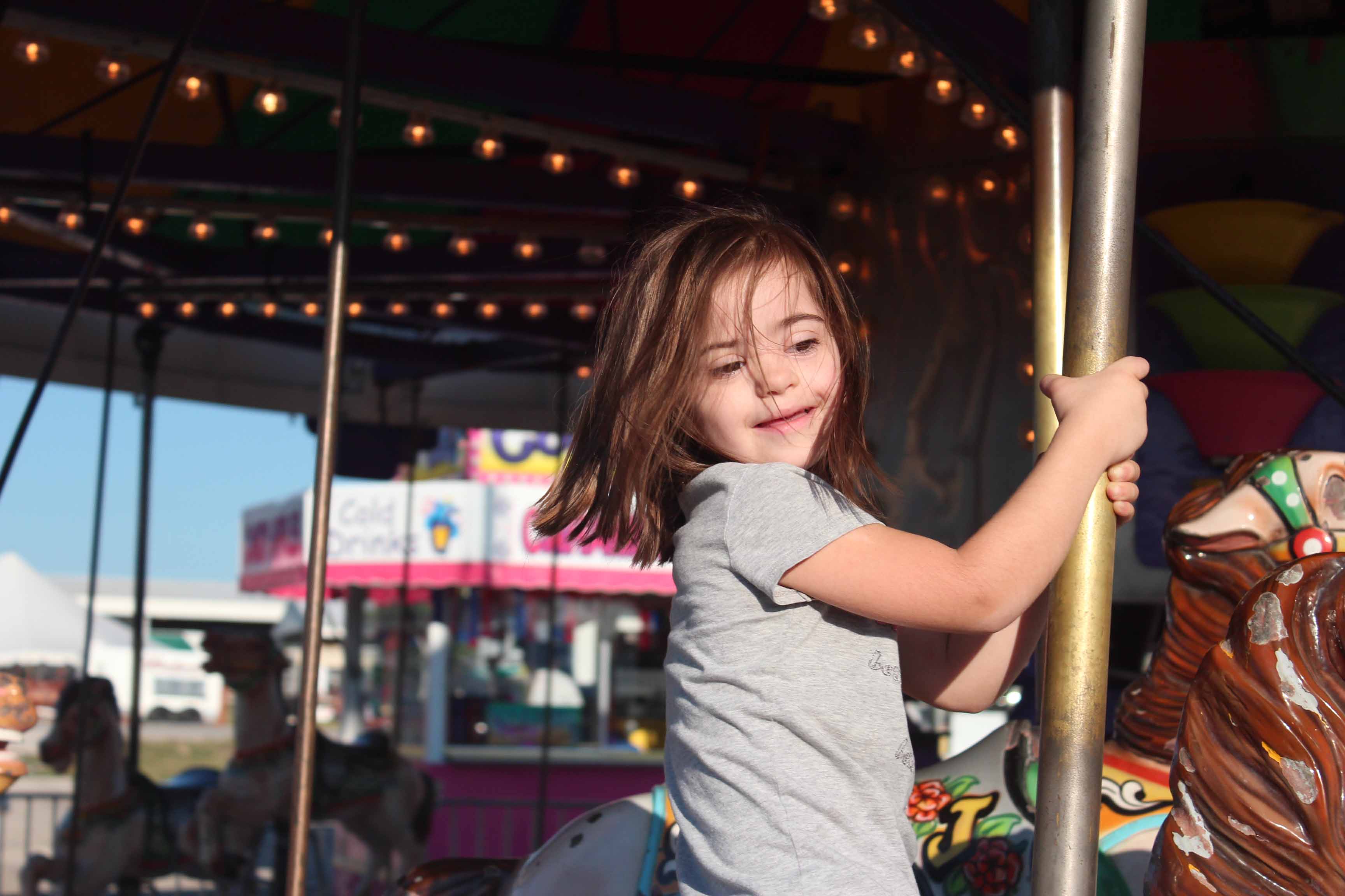 Julianna’s extra chromosome is an intrinsic part of who she is, one that impacts an awful lot of life–but not all. The basic things that underlie life are the same for her as they are for all the rest of us: eat, sleep, love, learn, live. Her disability is important, but it’s not the most important thing about her. She loves music, hates dogs, loves books and carousels and horses, is terrified of thunder, needs glasses, adores babies, had heart surgery, can read, cannot speak clearly, and is capable of making connections with the crustiest person she meets. To reduce all that to a label that comes first–“Down syndrome child,” “Downs child”–is to deny her the complexity of soul and personality that we grant everyone else.