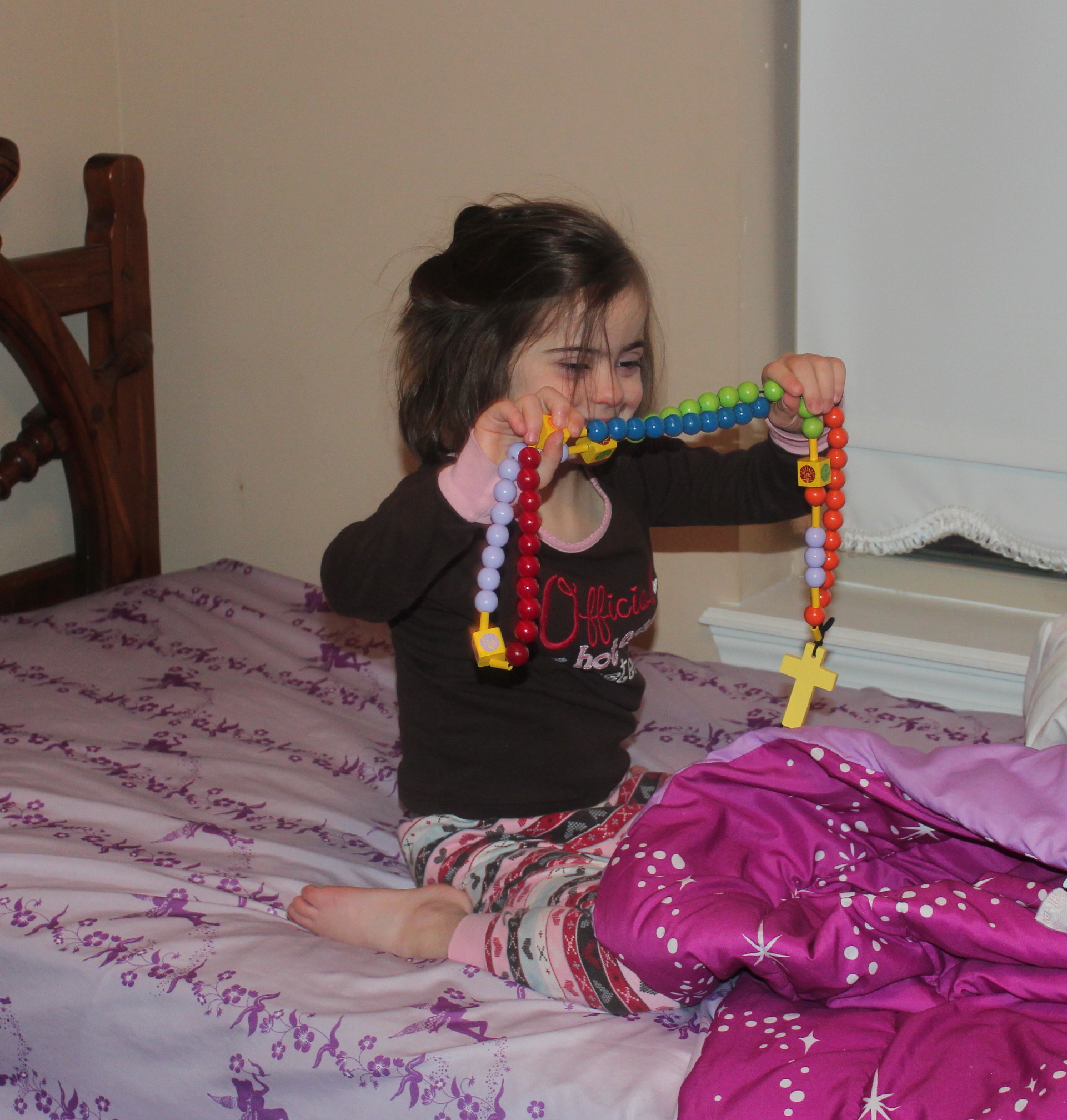RosaryChristmas break is long this year, a full two school weeks off, but so far it’s been good. New playthings help, of course, but they still bicker plenty. Yet I’ve been taking time to really be with them–focused on Trivial Pursuit, or the threading of a wooden rosary, or whatever, not allowing half my heart & mind to drift to the writing not getting done. It is truly amazing how that has shifted the way I see my children. I am feeling these constant shivers of awe and gratitude and, well, presence. So much of these early years I’ve felt overwhelmed by the demands of physical caring for multiple littles (especially because Julianna still needs help with so much), and guilty for how quickly the frustration built. People were always telling me to enjoy it because it’s so fleeting, but there was just so much weight to bear, all those admonitions only made me feel worse for feeling the burden to be so heavy. For the first time, I’m feeling that weight lifting, allowing me to enjoy the kids and live in the moment. I’m going to have to write a full post on this one, there’s so much to say on the topic.