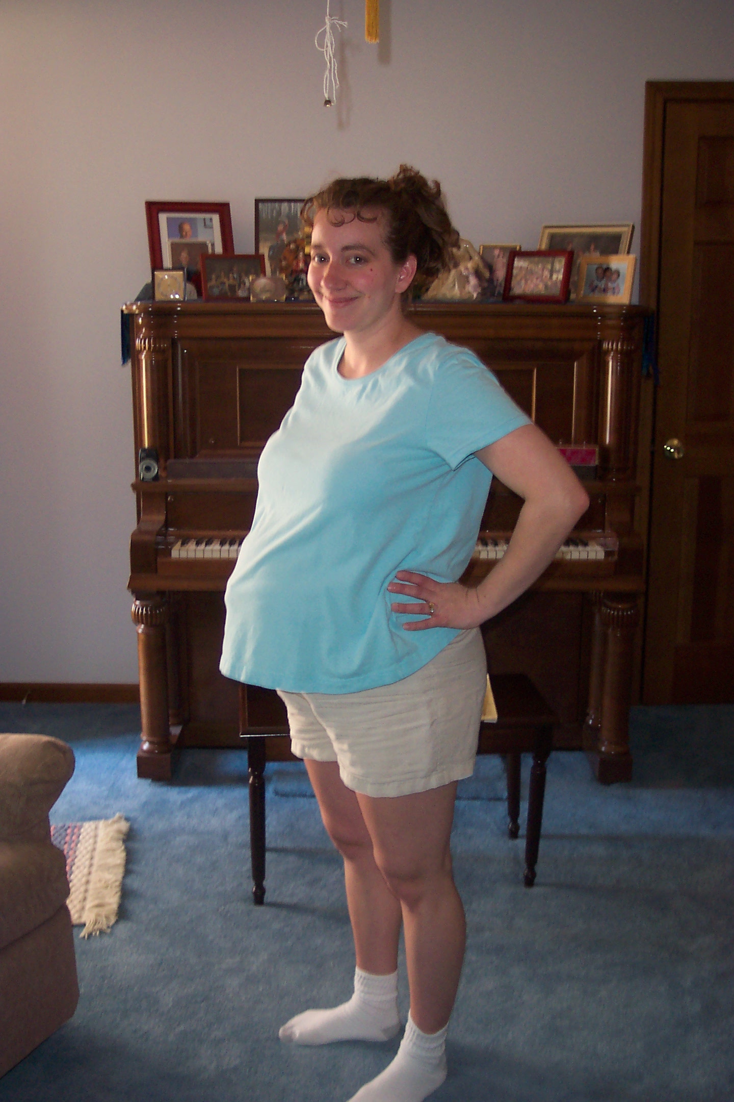 Another day, no labor. Another day, no labor. Another day, real contractions while I was lying in bed, but they stopped when I got up. It was the pregnancy that wouldn’t end. The following weekend, as we approached nearly a week past the latest possible due date, Christian and I agonized about inducing. I really wanted to do a drug-free birth, but this was getting intolerable. I mean, look at me!