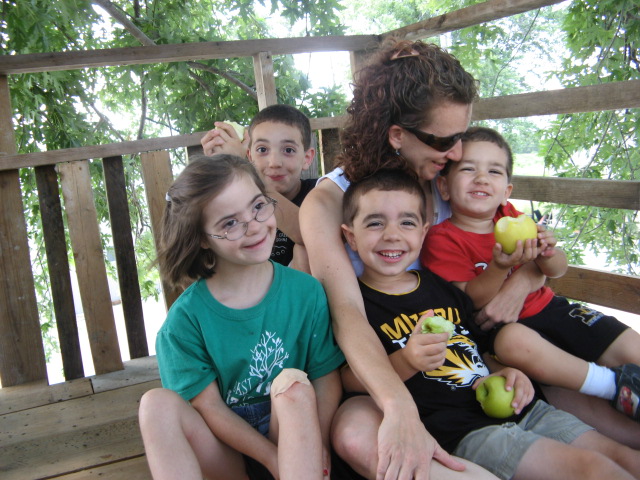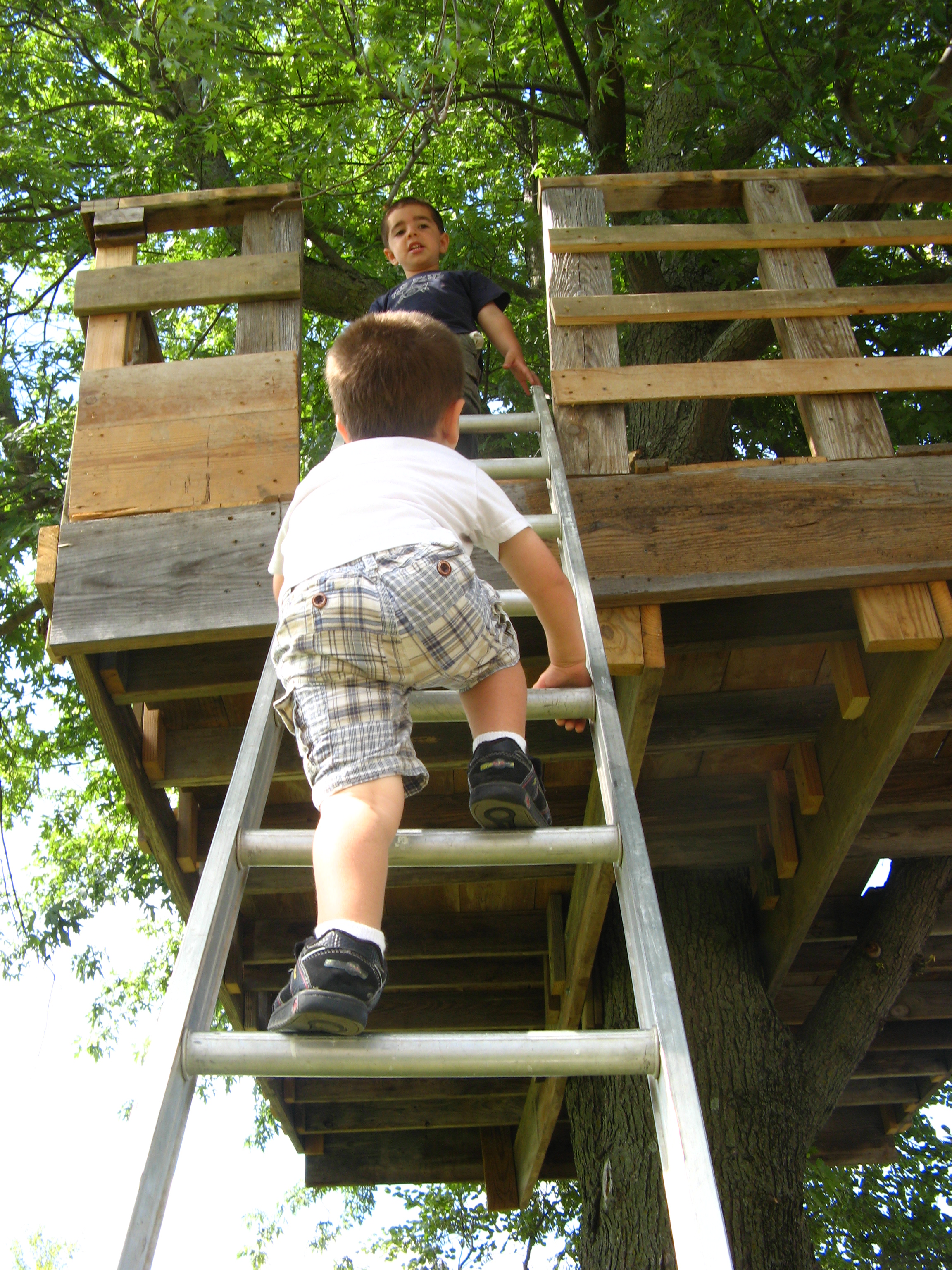 This is no wimpy treehouse. As Christian says, “It’s more like a deck in a tree.” Although there are a few finishing touches awaiting completion, Dad and the kids basically completed their work last week while I was at NPM convention. So…