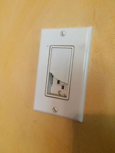 …who yesterday, while I was running siblings to various lessons, punched (yes, I did say punched) the light switch in the kitchen, with this result: